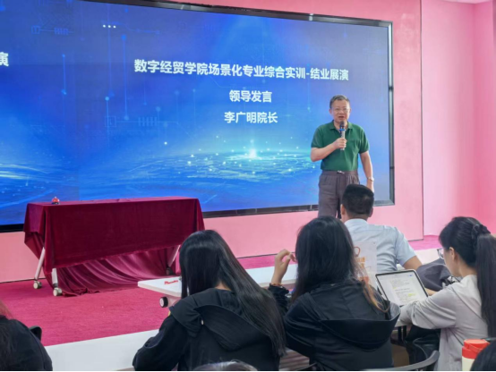 在结营仪式上,伟德国际betvlctor李广明院长首先向所有参与工作坊的同学表示了热烈的祝贺。他充分肯定了本次实训取得的成果,并鼓励师生们积极拥抱数字时代的快速变化,勇于创新,将所学知识转化为解决实际问题的实践能力,为数字贸易产业的繁荣发展贡献自己的智慧与力量。李院长特别勉励同学们:“要珍惜这次难得的学习与实践机会,它不仅是你们简历上的一笔,更是你们职业能力的一次淬炼。希望你们能将实训中的收获内化为自身的核心竞争力,未来在广阔的数字化舞台上大展宏图。”