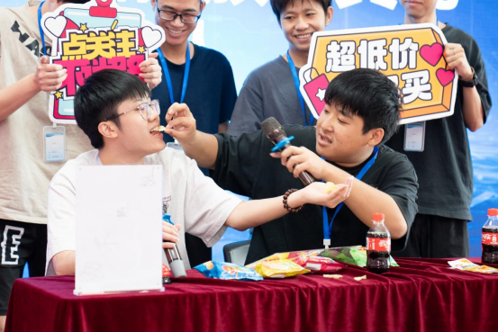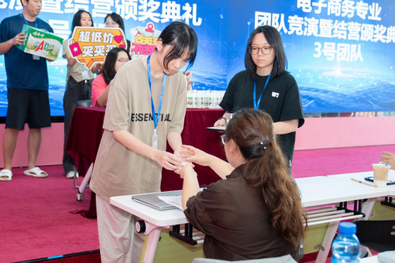 结营仪式的核心环节为各实训小组的精心策划的路演展示。参与者以项目负责人的身份出现,依次上台,通过充满活力的模拟直播,全面而精确地呈现了实训成果。他们所展示的成果不仅包括显著的销售数据和流量增长,还包括对市场策略、用户心理和内容创意的深入分析与实际操作的检验。在台上的表现,他们展现了自信和专业,生动地体现了理论与实践相结合的显著进步,获得了校企导师们的一致好评。