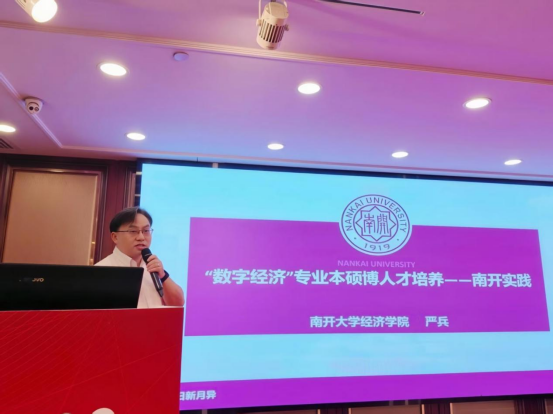 南开大学经济学院副院长、国际经济研究所所长严兵,以“数字经济专业本硕博人才培养——南开实践”为题,结合全球数字经济发展规模与战略布局,强调了发展数字经济的必要性。他还以南开大学为例,剖析了数字经济教学体系建设的可行性与面临的挑战,为高校人才培养提供了宝贵参考。