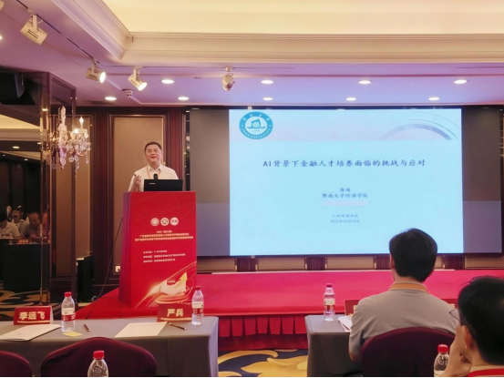 暨南大学经济学院副院长蒋海,围绕“AI背景下金融人才培养面临的挑战与应对”进行分享。他分析了AI赋能金融业的长期趋势,指出当前我国金融人才培养存在的问题,并提出解决方案,强调批判性思维、金融学基础及跨学科能力在人才培养中的重要性。