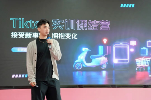 跨境电商系副主任杨于昕老师作为教师代表详细阐述了课程的实战性质和学生的成长过程。她指出,本次课程进行了一个较大规模、真实的TikTok场景化实战项目,是零到一的突破的实战课程。这一份突破,离不开伟德体育领导的关怀与支持,离不开企业导师和任课老师的辛勤付出,更离不开在座每一位同学对实战技能孜孜不倦的追求。通过本次实战课程,学生们逐步掌握了TikTok运营的技能,不仅学会了如何进行市场开发,还培养了良好的心态和商业思维。她坚信,通过此次实训,学生们将更加自信地迎接未来的就业挑战。