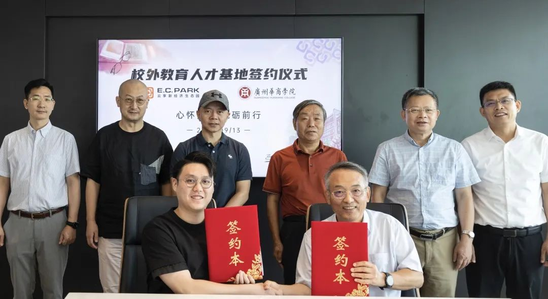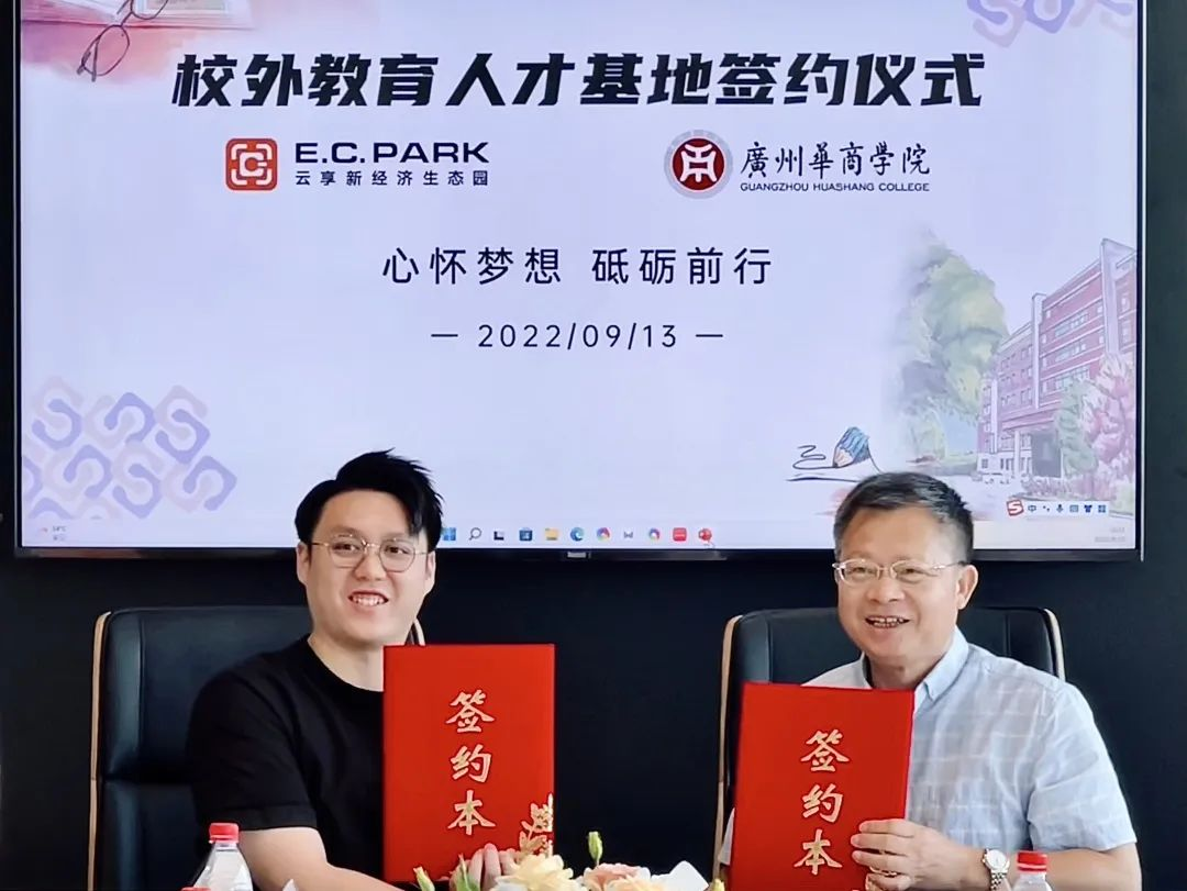 深化产教融合改革,共谋校企合作新篇。为促进教育链、人才链与产业链、创新链的相辅相成,推动我校校企合作、产教融合再度开花结果,与企业深入交流合作,促进华商学子技能提升、稳岗就业。9月13日上午,伟德体育副校长张捷率队,与经济贸易学院院长李广明,管理学院院长李招忠,校长助理、创新创业学院常务副院长余家军及相关工作人员一行前往广州云端共享实业有限公司云享新经济生态园(下称:E.C.Park)举行校企战略合作签约仪式暨教学实践基地挂牌仪式,共同开展产教融合项目合作及“校外教学实践基地”建设。