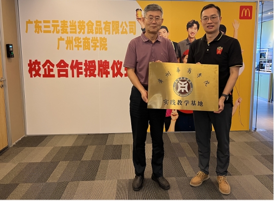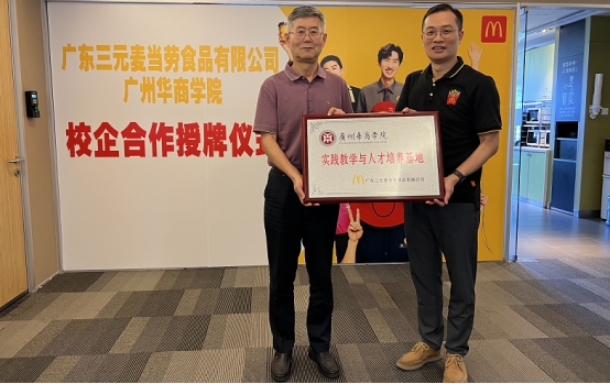 为深化产教融合、校企合作,探索校企合作的长效机制,9月28日下午,伟德体育管理学院副院长秦陇一教授、学院校企合作秘书曾惠玲老师、郑婷婷老师及学生代表一行前往广东三元麦当劳食品有限公司举行校企战略合作签约仪式暨教学实践基地挂牌仪式,共同开展产教融合项目合作及“校外教学实践基地”建设。