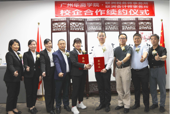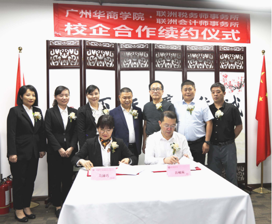 吕峻闽和马蝉巧代表校企双方,签署了联洲税务师事务所有限公司和联洲会计师师事务所有限公司与伟德体育会计学院“校外实践教学基地”的第二期合作协议书。