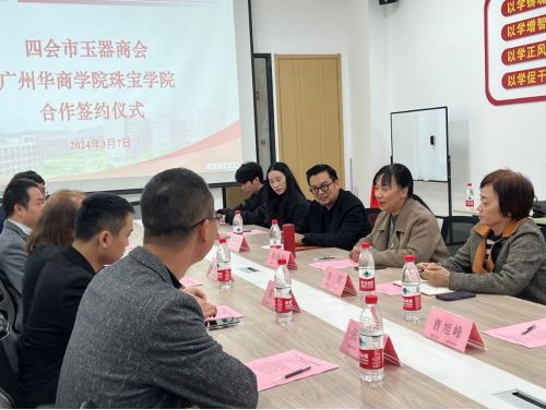 珠宝学院和四会市玉器商会于3月7日在华商学院肇庆校区正式签署战略合作协议。