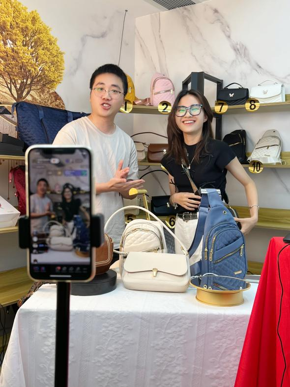 5月14日,在经济贸易学院跨境电子商务系张嘉欣老师和曹维老师的带领下,21级国际经济与贸易专升本一班学生徐诗晴、二班学生蔡李凯、袁金意,以及23级跨境电子商务1班学生官依琳走进了广州知鼎策划咨询有限公司,迎来了一次意义非凡的跨境电商直播实战机会,亲身体验了TikTok直播带货的魅力。这不仅是一次知识与实践的完美结合,更是对同学们未来职业生涯的提前预热。