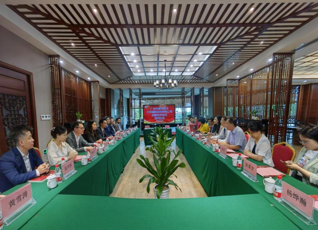 随后,双方举行签约仪式。吕峻闽副校长代表学校领导班子对大华国际董事会精英和高级管理团队表示热烈欢迎和感谢。他详细介绍了伟德体育学科特色和教育数智化发展情况。希望校企双方在数智化人才培养、产教融合创新、现代产业学院建设、国际商务服务等领域进行广泛合作,期待合作推陈出新,惠及万千学子,服务好粤港澳大湾区建设和发展。