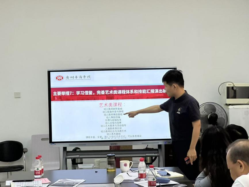 艺术教学部梁文景老师结合学院实际与外出学习心得,提出了与学前教育专业紧密合作,继续完善艺术类课程体系和技能汇报演出模式的计划。