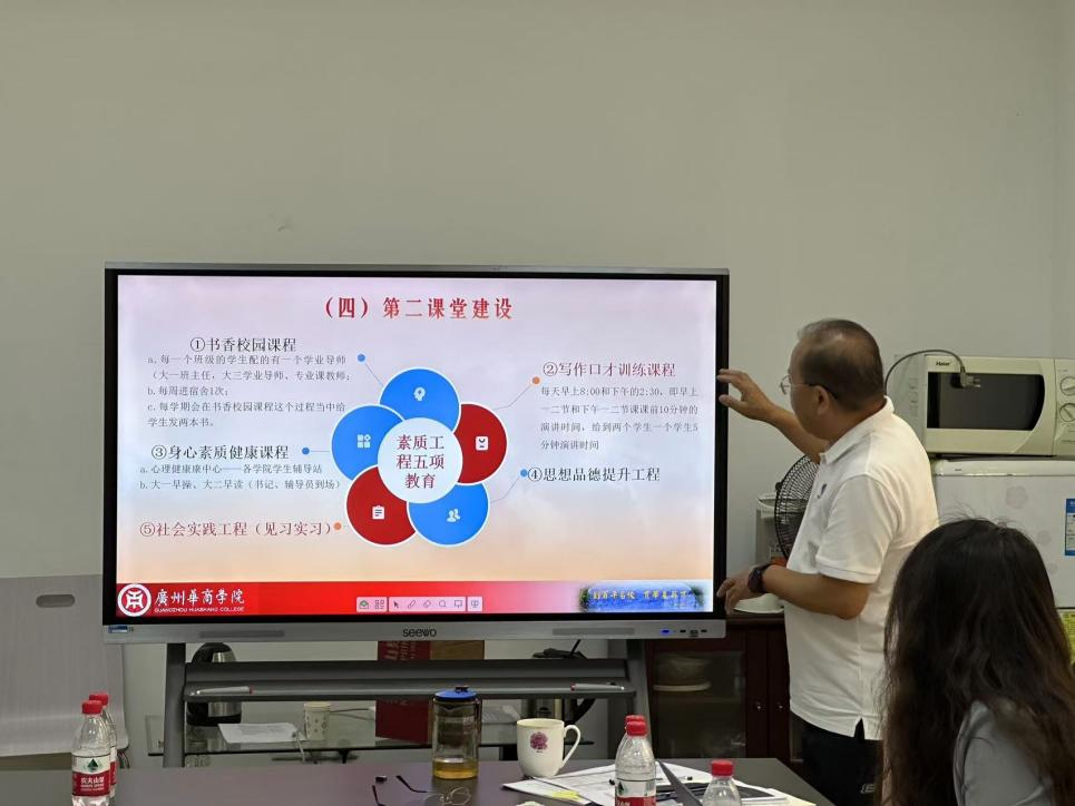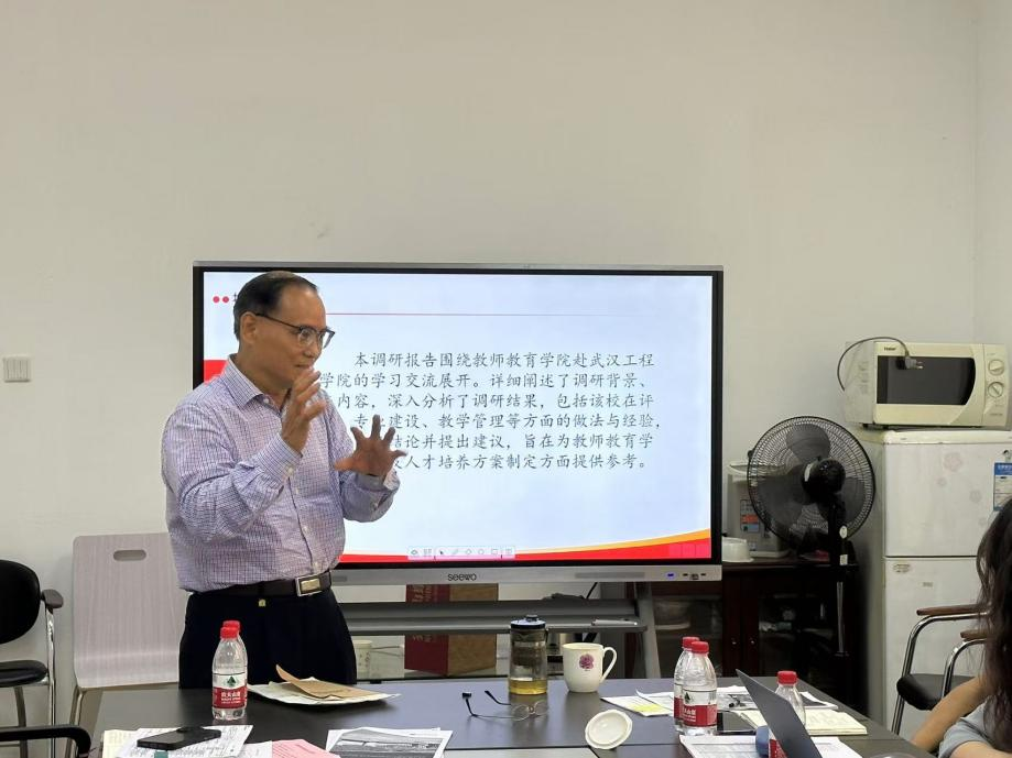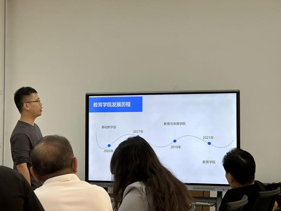 教师教育学院办公室李志森老师汇报了赴广东白云学院教育学院的调研情况,特别是专业设置、师资队伍及专业建设等方面的亮点,并对教师教育学院在文化墙建设和信息化管理方面提出了建设性改进建议。