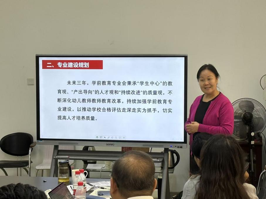 学前教育系张建波教授在总结调研成果的基础上,规划了未来三年学前教育专业的建设新思路。她强调,将秉承“学生中心、产出导向、持续改进”的教育理念,不断深化学前教师教育改革,持续加强专业建设,以迎接本科教学工作合格评估为契机,进一步提升人才培养质量。