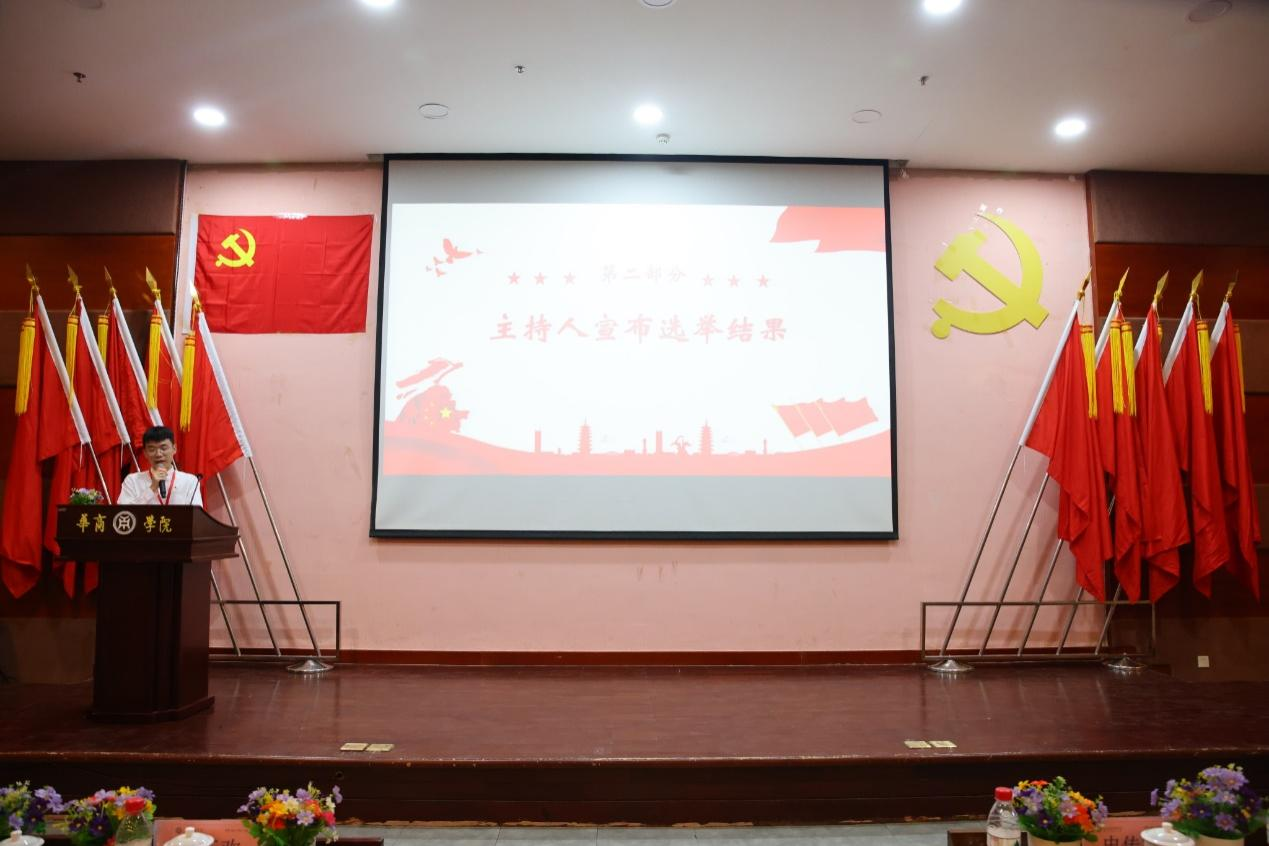 主持人何威义同志宣布中共伟德体育管理学院新一届委员会第一次全体会议选举结果和委员分工情况。