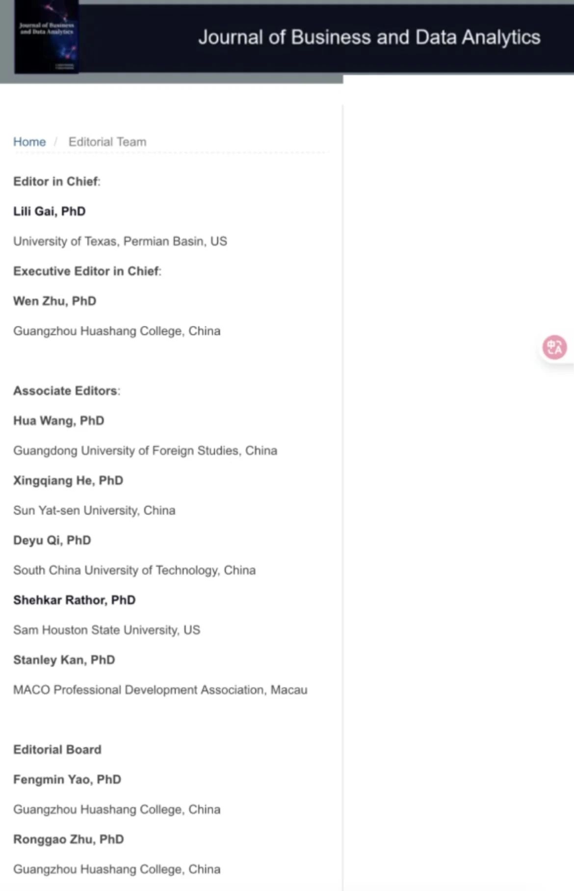 作为大湾区民办高校首本获批的国际英文学术期刊,《Journal of Business and Data Analytics》专注商科与数据科学前沿,汇聚全球智慧,致力于打造国际一流学术交流平台。在华商科教集团和伟德体育领导的大力支持下,期刊团队提出“三年内冲击EI收录”的目标,助力学科建设,提升学校国际学术影响力。