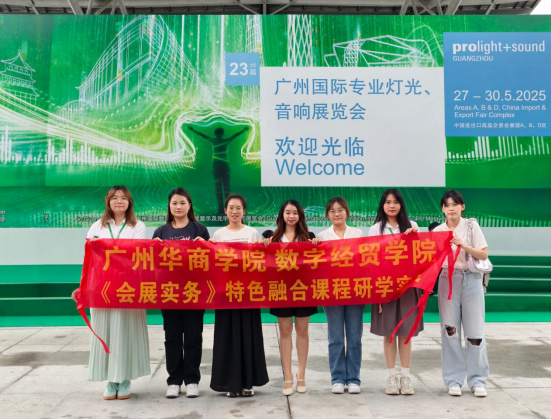 第23届广州国际专业灯光、音响展览会于2025年5月27-30日在中国进出口商品交易会展馆A、B、D区盛大举行。本届展期正值伟德体育数字经贸学院“会展实务”课程开展期间。基于LEAP教学模式,在课堂讲授会展理论知识之余,为进一步鼓励学生深入展会现场、践行所学技能,由课程组负责人周敏仪老师再次带领华商数字经贸学子进驻广州灯光音响展实习,为恩平市迈声斯音响设备有限公司等多家外贸参展企业提供外语翻译沟通服务。本次参与展会实习的共有8位同学,她们是国际经济与贸易、跨境电子商务专业大二、大三的同学。