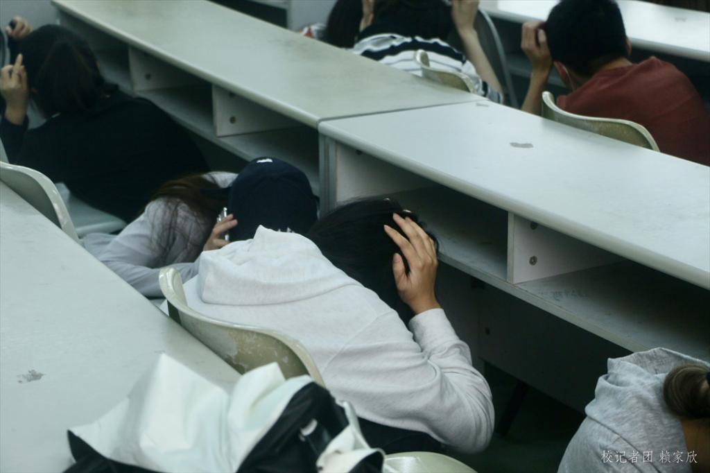 地震逃生演练,分为震时紧急避险、震后疏散、确认人员安全三个科目。5月16日下午,伴随着第一次警报声的响起,演练正式开始。各应急小组相互配合按照演练方案进行,课室任课教师组织学生原地避险,等待命令疏散。随着第二次警报响起,现场指挥果断下达震后疏散指令。课室任课教师指引学生分批疏散至西区足球场集结地点,由疏散引导组组长确认疏散人员安全状况。422人全部安全、顺利疏散到指定安全区域。整个疏散过程师生积极参与,环环相扣,紧张有序。
