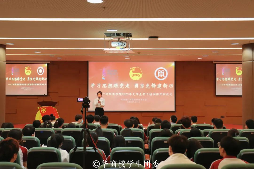 为深入学习贯彻习近平新时代中国特色社会主义思想和党的二十大精神,推动广大学生骨干明确责任与使命,用科学理论武装头脑、指导实践,帮助大学生骨干坚定跟党走的信念,成长为中国特色社会主义事业的合格建设者和可靠接班人,5月25日,“学习思想跟党走 勇当先锋建新功”伟德体育2023年大学生骨干培训班开班仪式在图书馆报告厅举行。学校党委书记苏宁、校团委书记陈刚、各二级学院团委书记及增城、四会校区301名学生骨干线下、线上参加开班仪式。