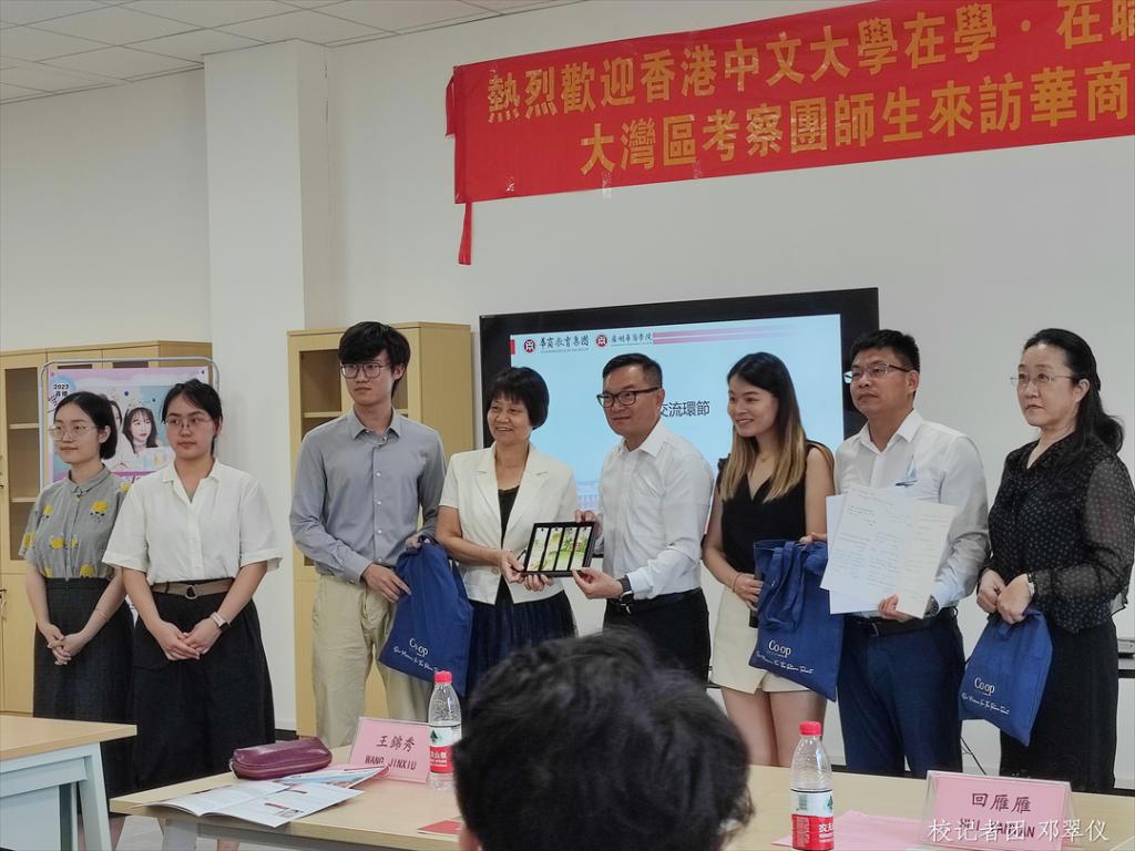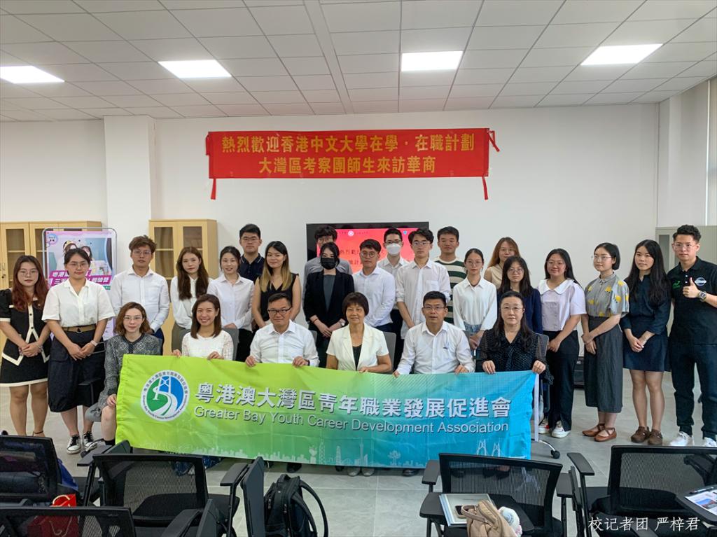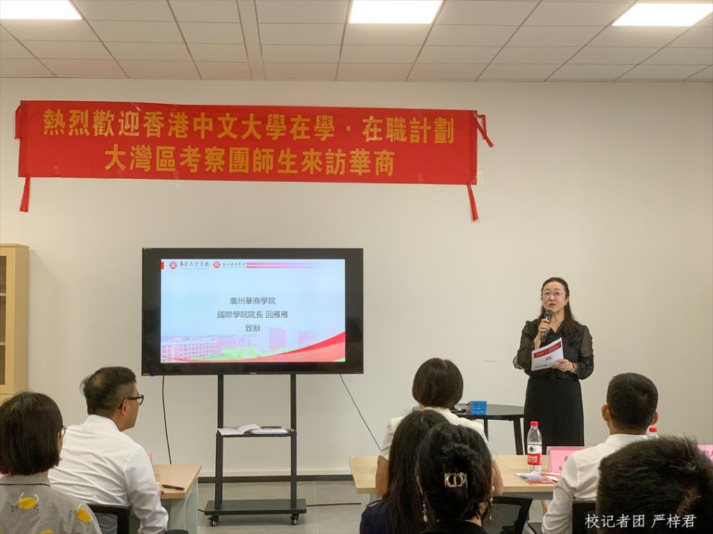 广州华商职业学院副校长余家军向港中文考察团分享粤港澳大湾区创新创业发展方向。他提到,大湾区政府高度重视青年的创新创业,华商学院创新创业孵化基地得到广州市政府的大力支持,表明本校学生在创新创业方面具有一定特色和优势。同时,学校为支持学生创新创业,已开设具有广东省一流本科水平的创业管理课程,并出台一系列政策支持学生创新创业,鼓励学生不仅注重学科竞赛,还要走出校门,增强实践能力,展现大湾区学生的风采。余家军副校长表示,港中文的学生拥有不同的文化背景,对市场的理解各不相同,他相信,在港中文学生进一步了解大湾区文化后,利用语言优势、地理优势,结合港中文优越的教学资源,作为个体必能把握大湾区,放眼全球。