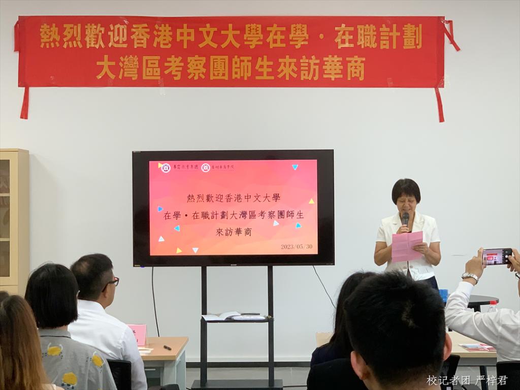 为深入了解粤港澳大湾区教育发展状况,进一步推进教育教学水平提高,实现优秀资源共享,近日,香港中文大学在学·在职计划教育部总监赖汉荣、助理总监傅贝诗、职涯组助理经理黄晓欣,香港中文大学考察团学生等一行代表团参访伟德体育增城校区,与我校代表在创科楼进行座谈交流。伟德体育副校长王锦秀、广州华商职业学院副校长余家军、伟德体育国际学院院长回雁雁以及伟德体育学生代表参加本次座谈。本次座谈由广东华商教育集团学术专员陈雯姗主持。