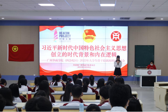为深入开展学习贯彻习近平新时代中国特色社会主义思想主题教育,全面领会习近平总书记有关青年工作的重要思想,进一步引导和鼓励广大华商青年骨干努力成为有理想、敢担当、能吃苦、肯奋斗的新时代好青年,我校团委于5月27日和5月28日上午10:30分别在增城校区图书馆报告厅和四会校区8号楼108教室开展2023年大学生骨干培训班主题课程。校团委陈刚书记出席此次授课。