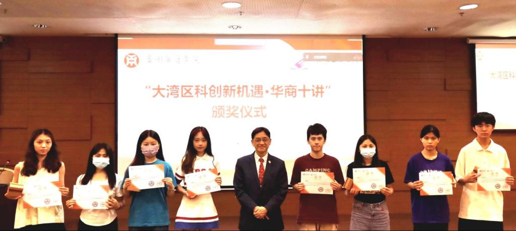 讲座开始前,陈志辉教授为全程参加“大湾区科创新机遇•华商十讲”的同学们颁发证书。