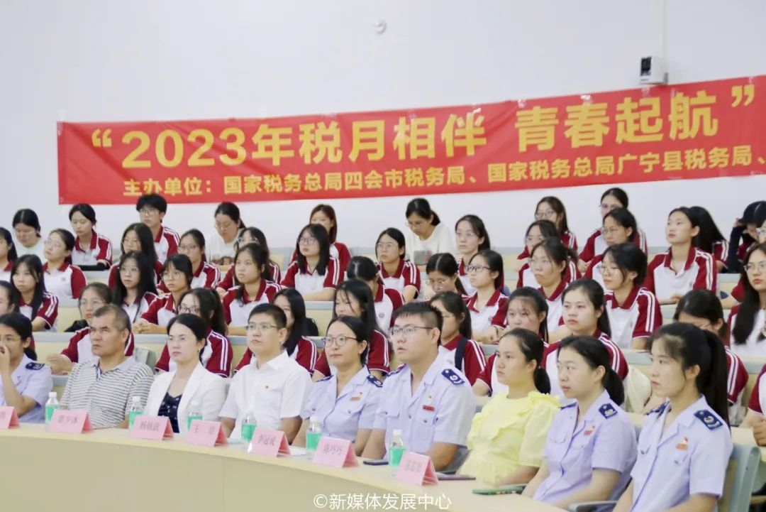 为助力大学生走稳走好创业就业第一步,推进校园税收普法教育和学生税收实践相融合,9月20日,国家税务总局四会市税务局、国家税务总局广宁县税务局、四会市工商业联合会联合我校开展的2023年“税月相伴 青春起航”跨区域税收宣传进大学活动顺利举办。伟德体育校长助理、四会校区党委副书记、管委会常务副主任覃少冰,四会市税务局党委委员、副局长杨炳歆,四会市工商联会员部部长梁金洪,广宁县税务局第一税务分局局长王培以及税务局、工商联、伟德体育(四会校区)相关工作人员参加本次活动。