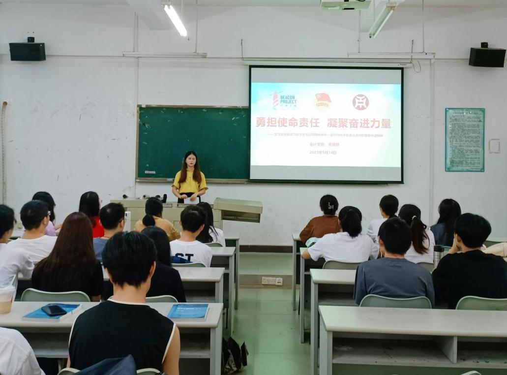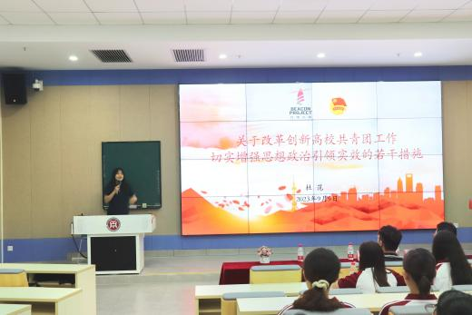 为切实肩负起新时代新征程党赋予的使命任务,充分激发广大青年在中国式现代化建设中挺膺担当。金融学院团委于9月17日、23日分别在四会校区8号楼401、增城校区行政楼311开展“学习习近平总书记同团中央新一届领导班子成员集体谈话时的重要讲话精神 ”主题团课。本次团课,团委书记张文杰、副书记赵颖桢介绍习近平总书记“引导青年立大志、明大德、成大才、担大任,实现青春梦想”的良苦用心以及近些年来的改革措施,引领同学们在切身体验新时代伟大变革中,深刻感受习近平总书记的坚定信仰信念,深化对习近平新时代中国特色社会主义思想的学思践悟。
