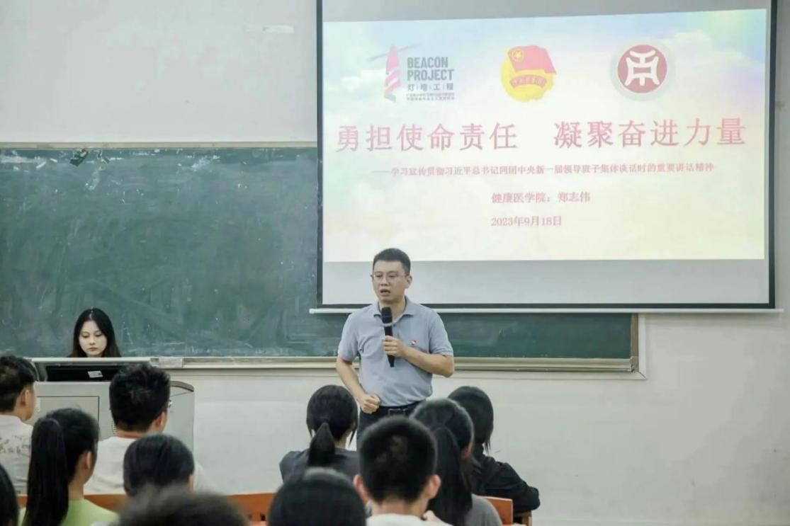 为更好地学习宣传贯彻习近平总书记的重要讲话精神,伟德体育健康医学院于2023年9月18日下午3:00在励志楼C101开展了主题为“勇担使命责任,凝聚奋进力量”主题团课。健康医学院各学生组织骨干、各班学生代表参与本次会议。郑志伟老师带领同学们细致解读了习近平总书记的重要讲话内容,一览共青团和青年工作的变革历程,深度剖析党中央对共青团工作的新要求,并针对培养什么样的青年、建设什么样的共青团两个问题做出基本概要。郑志伟老师对同学们提出三点嘱托与期望:第一,团结奋进,踔厉向前争做先锋;第二,实干担当,脚踏实地服务为民;第三,钻研学业,精益求精奉献社会。他希望各学生组织骨干、各班学生代表能够将所学习的内容付诸于实践,以实际行动担当青年责任,以刻苦努力建设国家。