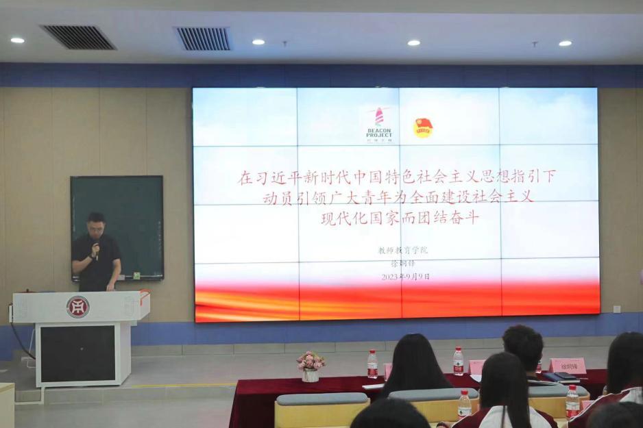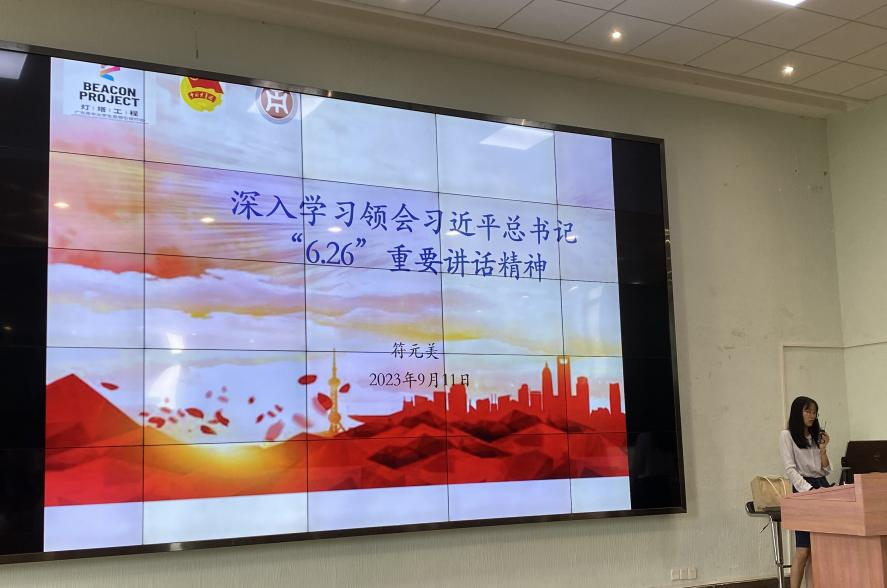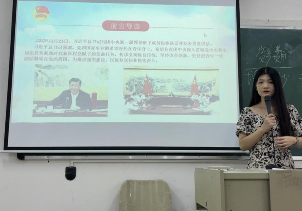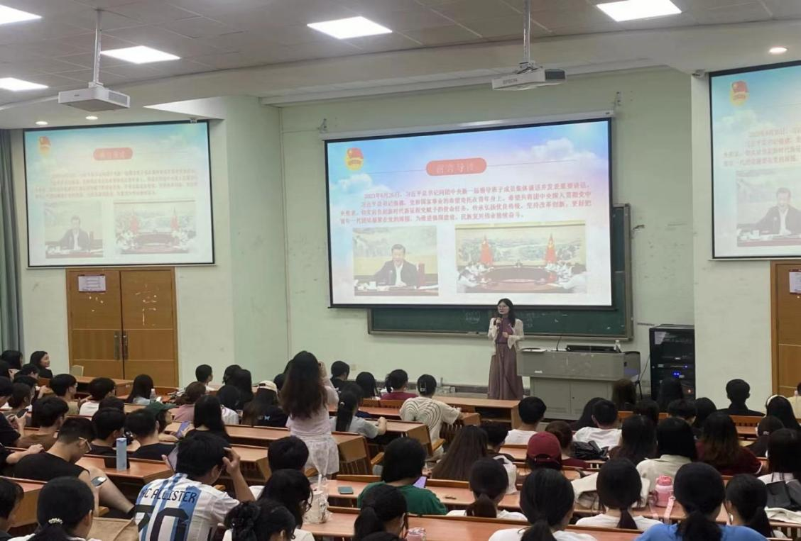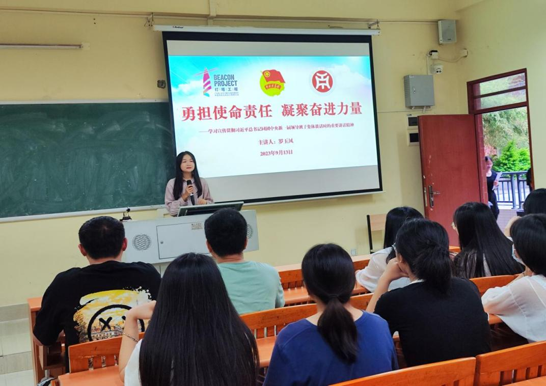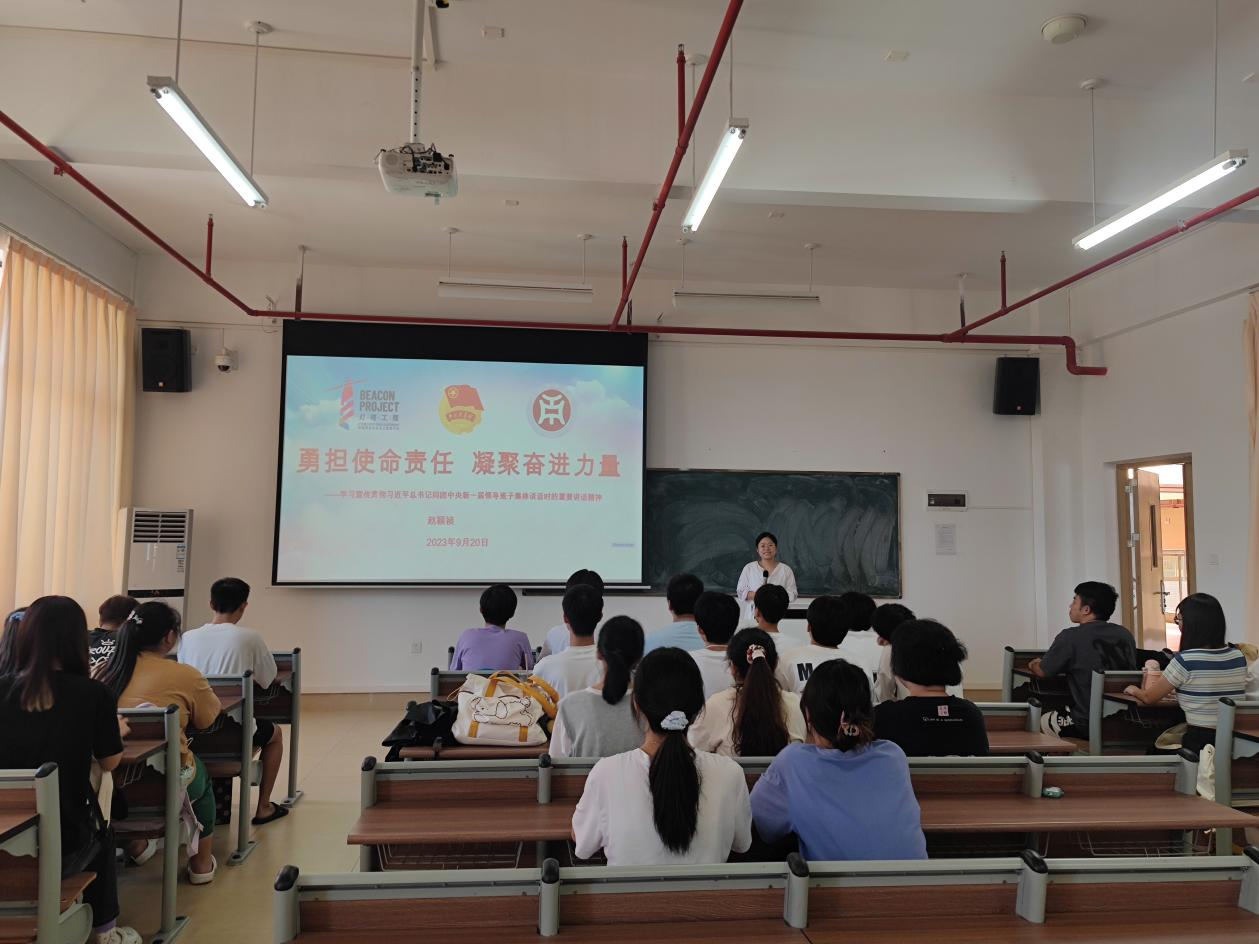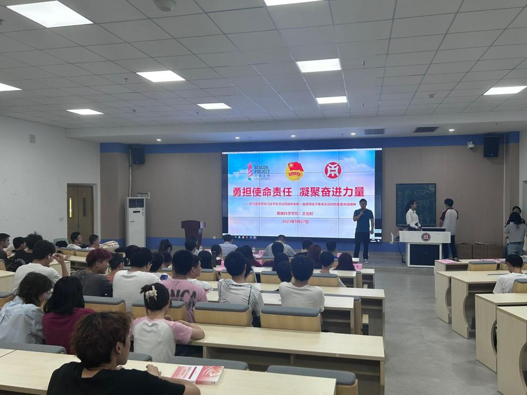 2023年6月26日,习近平总书记同团中央新一届领导班子成员集体谈话并发表重要讲话。高度评价了党的十八大以来青年工作的重大成就和深刻变革,充分肯定了过去五年共青团工作的成绩,深刻阐明了新时代中国青年运动和青年工作的主题和方向,明确了新时代新征程共青团的主要任务。为深入学习习近平总书记重要讲话精神,全面把握习近平总书记重要讲话的核心要义,鼓励团员青年在新时代、新征程上踔厉奋发、勇毅前行,外国语学院团委于9月13日增城校区厚德楼C204,9月20日在四会校区8号楼605分别组织开展了“学习习近平总书记在同团中央新一届领导班子集体谈话时的重要讲话精神”主题团课。两位老师鼓励同学们要筑牢理想信念根基,坚定理想信念,增强四个意识,补足精神之钙。要练就过硬本领,珍惜青春韶华,高扬实干奋斗之帆,坚持在学中干、在干中学,不断提升自己的本领水平,成为可堪大用、能担重任的栋梁之才。