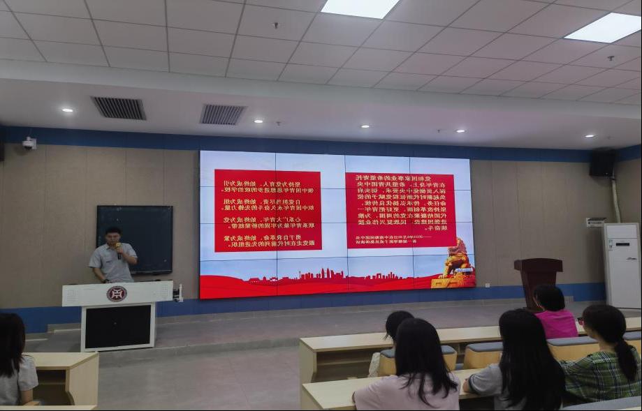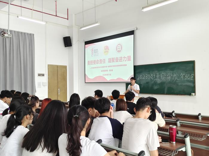 9月13日,经济贸易学院在四会校区6号楼304组织召开学习习近平总书记在同团中央新一届领导班子集体谈话时的重要讲话精神主题团课。本次团课以“勇担使命责任,凝聚奋进力量”为主题。会上,曾庆威老师围绕新时代中国青年运动和青年工作,为大家开展经济贸易学院新学期工作做出相关部署和具体要求。他指出,实现强国建设、民族复兴宏伟目标,需要全党全国各族人民包括广大青年团结一致、全力以赴,继续爬坡过坎、攻坚克难。新时代青年应增强历史责任感和使命感,激发强国有我的青春激情,在强国建设、民族复兴伟业等各领域各方面工作中争当排头兵和生力军,展现青春的朝气锐气。