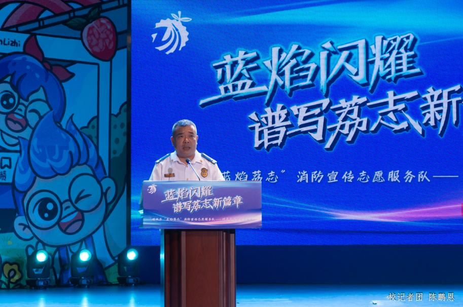 活动中,学校吕峻闽副校长代表学校发言,他表示“蓝焰荔志”精英宣讲团,是增城区消防安全宣传教育的重要载体,是推动公共安全意识深入人心的有力举措。吕峻闽副校长高度称赞“蓝焰荔志”精英宣讲团成员以满腔热情和强烈的社会使命感,积极投身消防安全知识的普及工作,展现了当代青年的责任与担当。