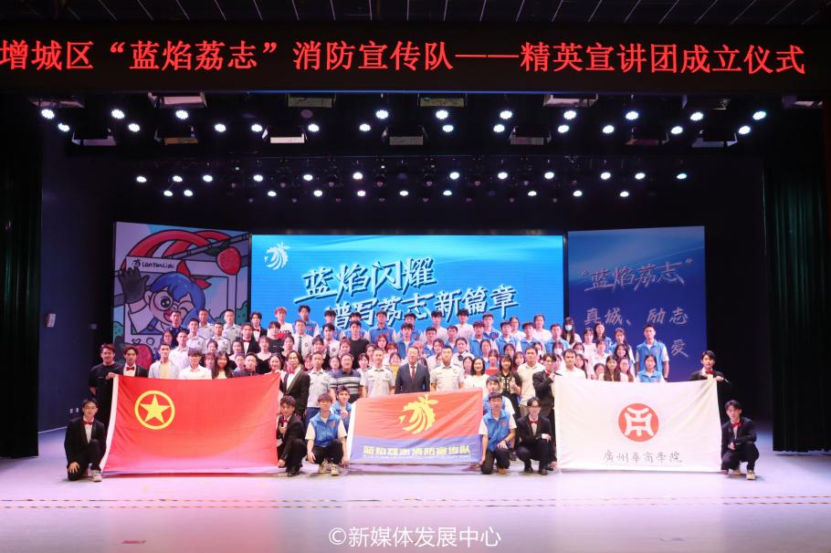 5月10日晚,由广州市增城区消防救援大队主办,广州市增城区青少年宫承办,伟德体育、广州华立学院协办的“蓝焰荔志”精英宣讲团成立仪式在增城区青少年宫举行。广州市消防救援支队副支队长李土恩、团增城区委副书记温振区、广州市增城区消防救援大队大队长刘飞、广州市增城区消防救援大队副大队长柳江斌,伟德体育副校长吕峻闽、后勤保卫处处长杨燕平、校团委书记陈刚,广州华商职业学院副校长孙虎及华立三院校领导师生参加本次成立仪式。为展现华商青年风采,传递青春正能量,我校团委、后勤保卫处带领校飞跃艺术团、校“蓝焰荔志”消防宣传队80余名学生参加本次活动。