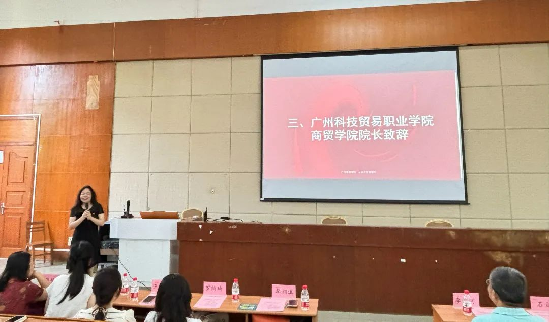 李广明院长首先对广州科贸职业学院商贸学院出席的全体师生表示热烈的欢迎,对经济贸易学院的专业设置、师资队伍、招生就业、教科研概况及产教融合等方面做了全面介绍和展望,希望与广州科贸职业学院商贸学院加强在办学、人才培养及产教融合等方面的深入合作。