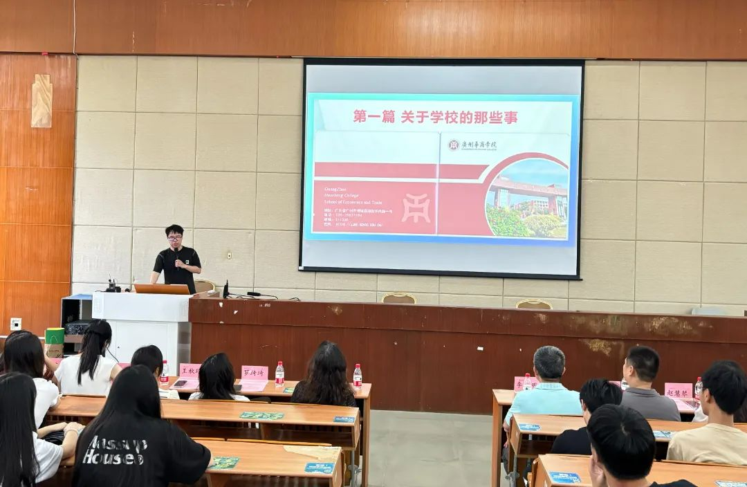 国际商学系主任罗衡军老师对伟德体育地理位置、校园环境、住宿环境、学习环境、学校食堂、学校运动场及其他校内设施等进行了详细的介绍,并从学院层面介绍了学院专业结构、师资力量、科教研成果等,以及从国际商务专业层面介绍了专业师资、课程体系、就业升学及专业特色等。