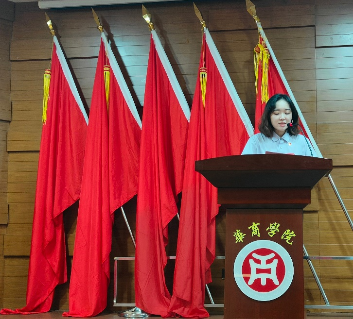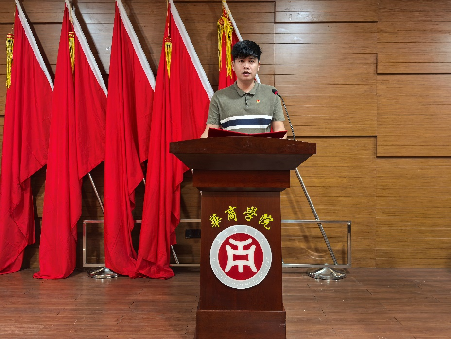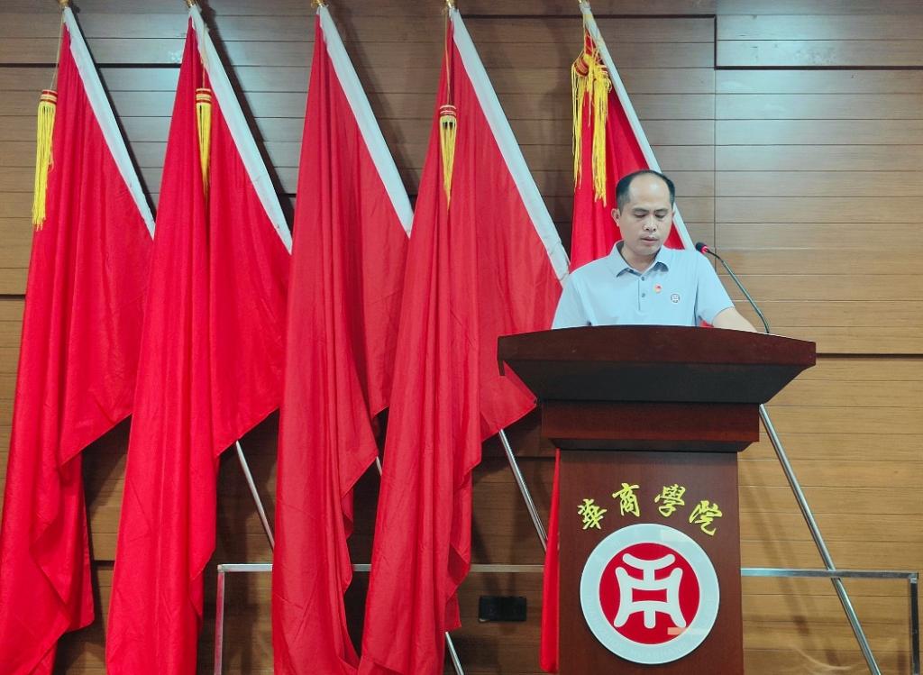 伟德体育纪委委员、纪检办主任、党办副主任黄秋铭同志代表中共伟德体育委员会宣读《关于同意召开中国共产党伟德体育会计学院党员大会的批复》。