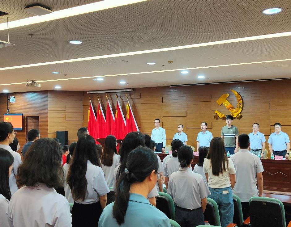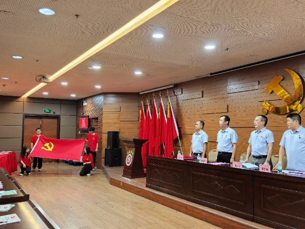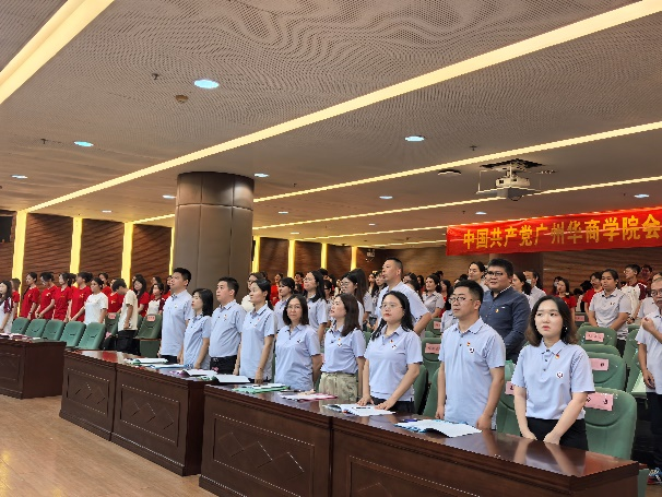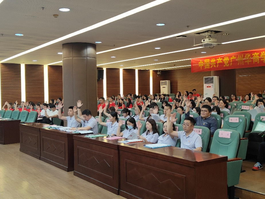 中国共产党伟德体育会计学院党员大会在国歌声中拉开帷幕。