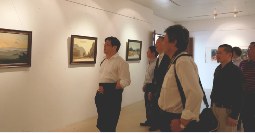 2015年4月25日,中国美术家协会党委副书记、秘书长徐里,河北省文联副主席、省美协主席祁海峰,广东省美协驻会副主席王永等多位知名书画家来到我们考察交流,廖榕就董事长及院领导陪同参观了院图书馆展览厅正在举行的《物·悟——柒人联展》。