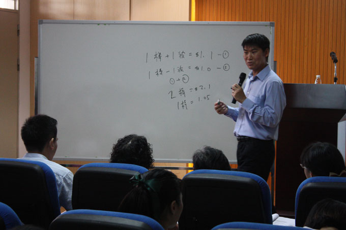 2014年8月27日,香港大学专业进修学院陈耀光博士来我们为青年教师授课。授课前,郭银华副院长发表讲话,对陈博士的到来表示热烈的欢迎。近60名会计系、经济与金融系的教师参加了为期一天的课程。