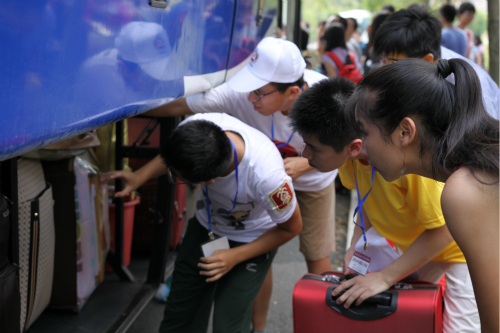 随后,记者跟随小吴前往大本营领取了行李并搭上了开往宿舍的校车,从来到学校忙碌到现在,小吴终于有时间歇一口气,于是跟记者拉起了家常。