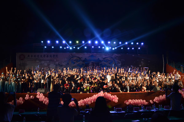 2014 年5月16日晚19:30,由学院团委主办、院学生会承办的“万达特约华商学院十大歌手总决赛”在田径场这里拉开了绚丽的帷幕。学院董事长廖榕就,增城市文化局局长,学院团委书记杨宪、副书记刘苗,会计系副主任许娜、党委办公室招韵雯、骆帼棣,团委黄剑年,学生处李师,文学系团总支书记朱明威,公共管理系团总支书记张函梅,外语系团总支书记罗良宏等与近4000师生观看了比赛。