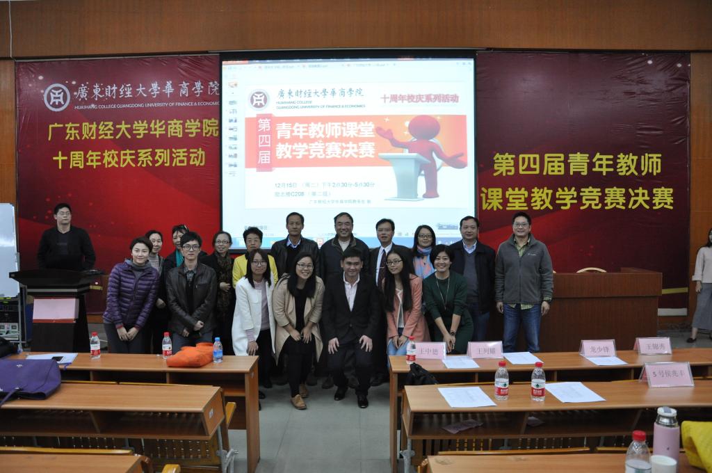 2015年12月15日下午2点30分,广东财经大学华商学院十周年校庆系列活动之第四届青年教师课堂教学竞赛决赛在图书馆一楼学术报告厅和励志楼C208两个会场举行。学院副院长邓基泽、支戈壁、王中德、郭银华、马玉珍、龙少锋、王列耀、王锦秀等院领导莅临会场,各院系领导、专任教师等现场观摩了本次决赛。
