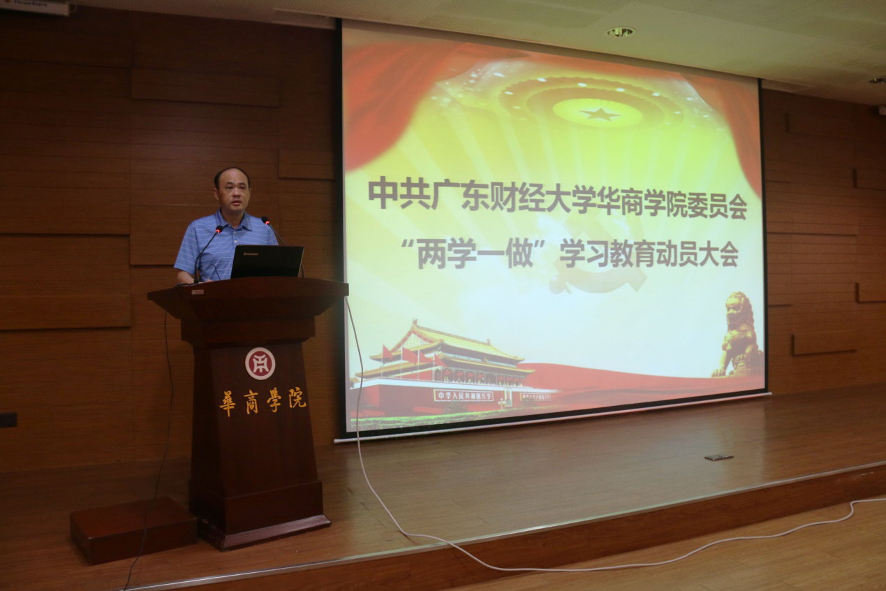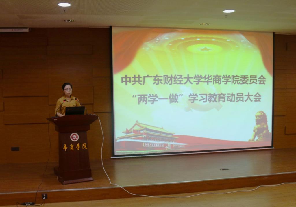 5月5日上午9时,中共广东财经大学华商学院委员会“两学一做”学习教育动员大会在中央图书馆报告厅召开。学院党委书记苏宁、学院党委委员吕书勉、学院党委委员黄国富、各党总支书记(副书记)、各直属党支部书记、各基层党支部书记以及学生党员代表参加会议,学院党委委员吕书勉同志主持会议。吕书勉同志阐述了本次动员大会的目的意义,并号召全院党员同志深入贯彻党的教育方针,切实做好全院党员的学习教育工作。