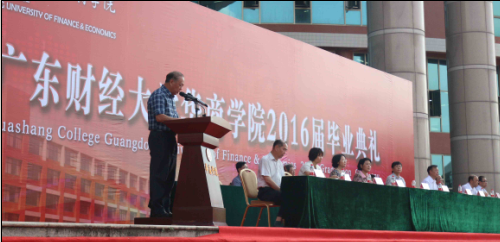 广东财经大学王廷惠副校长的致辞中,给毕业生们提出了三点希望。坚持学习,坚守梦想;坚持进步,脚踏实地;坚守底线,勇于担当。