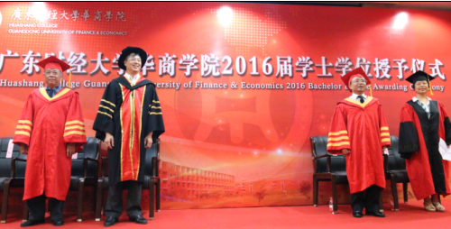 6月24日上午,我们2016届学士学位授予仪式分别在图书馆报告厅、国际会议中心报告厅和启智楼一楼三个会场举行。董事长廖榕就,广东财经大学副校长于海峰、王廷惠,华商学院院长陈玉川,副院长王列耀分别为600名毕业生代表颁发学位证书。