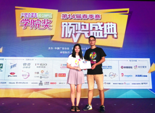 7月28日,华商文学院艺术设计学系万爱婵同学的设计作品在全国1200多所院系师生的138889件作品中脱颖而出,获得第十四届学院奖银奖,指导老师程海涛荣获“杰出指导老师”称号。万爱婵设计团队也受中国大学生广告艺术节学院奖组委会邀请,赴北京中央电视台参加的颁奖典礼。