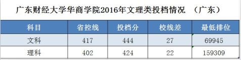 广东省内投档线创新高,其中文科最低投档分444分,远超省控线27分,最低排位69945;理科最低投档分424分,远超省控线22分,最低排位159309;美术类在第一、二志愿线上超计划完成录取。