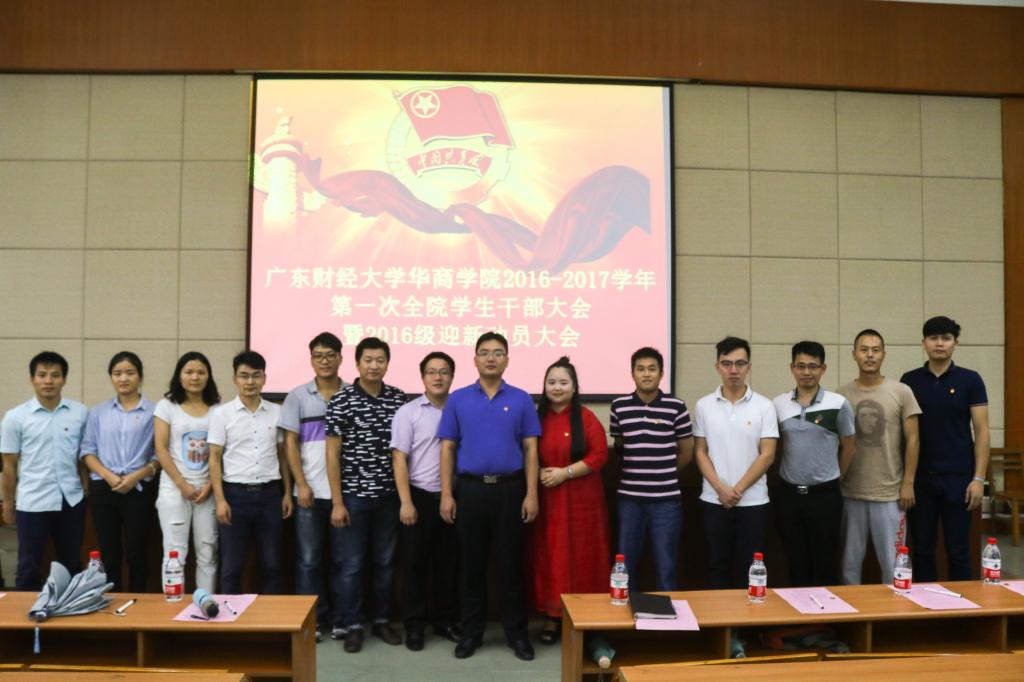为进一步加强我们学生干部队伍建设,发挥学生干部的职能作用,增强学生干部思想道德意识。9月2日下午,学院团委组织召开2016-2017学年第一次学生干部代表大会暨2016级迎新工作动员大会在励志楼C208举行。出席本次大会的领导嘉宾有:学院团委杨宪书记、学院团委刘苗副书记、学院团委陈刚副书记、学院团委常委吴泽佳老师、学院团委常委黄秋铭老师、学院团委黄剑年老师及二级院(系)团总支书记、学生会指导老师以及各学生组织、班干部代表。