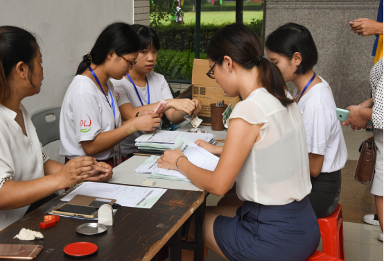 今年迎新活动各部门积极配合,安排缜密。第一天报到成功的学生,今天已经开始新生体检。为了避免体检时学生人数太多造成拥堵,学院按照划系部体检,现场秩序在志愿者的引导下有条不紊地进行。