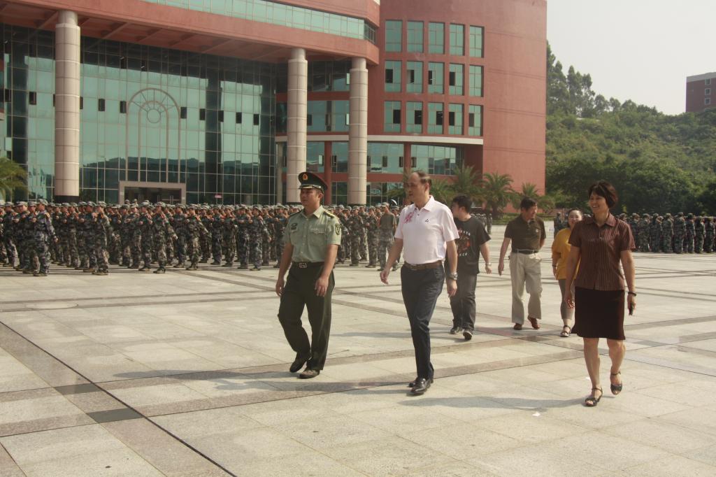 9月23日上午,党委苏宁书记,王锦秀副院长在军训团团长叶计选,军训团副团长、学生处李希恒处长,团委刘苗副书记的陪同下巡视我们2016级新生军训现场,亲切慰问正在紧张训练的承训教官、参训学员及相关工作人员。