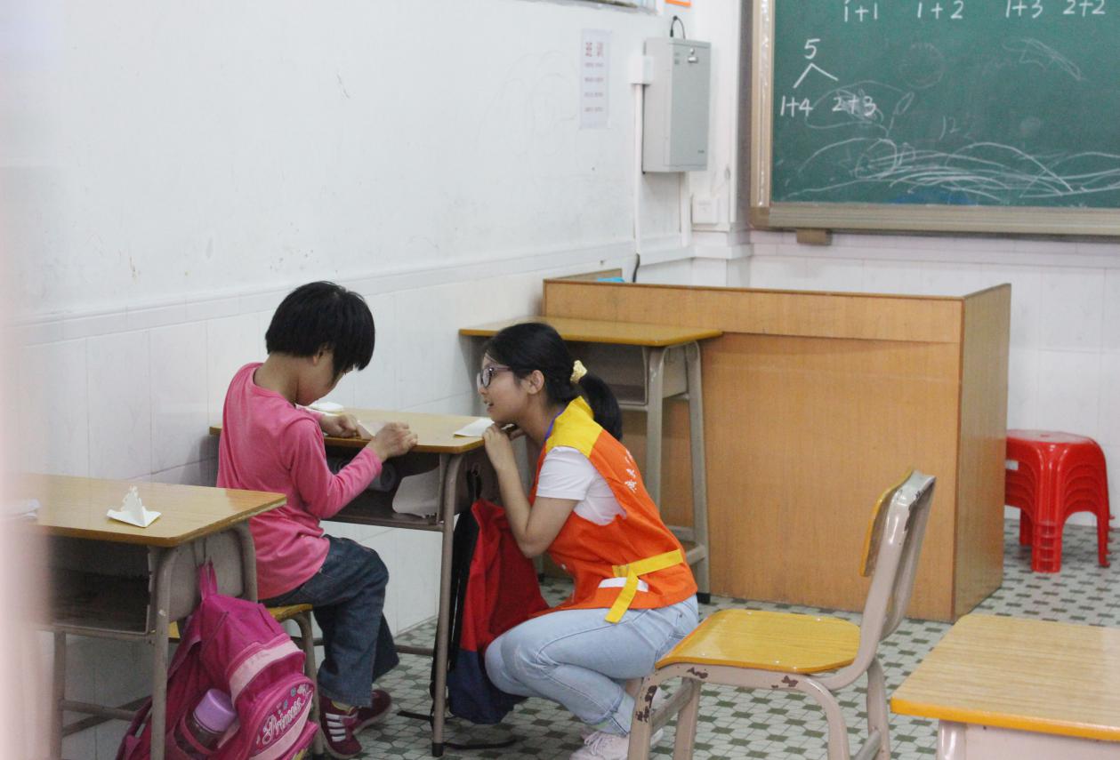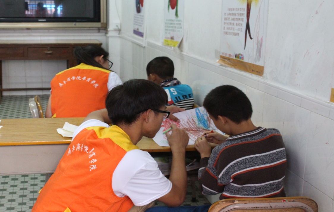 在支教过程中,我们志愿者们结合致明小学学生的特殊性,采取形式多样的活动内容,引导有言语障碍、自闭症的小朋友发出愿望,融入大伙的欢乐和笑声中,带领有智慧障碍的小朋友一起朗诵、一起游戏、一起书写,充分发挥了“奉献、友爱、互助、进步”的志愿精神。支教内容主要包括折纸教学、通过活泼有趣的动画片引导小朋友描绘自己心目中的最喜欢的小动物、引导学生学唱儿歌、与学生共同完成拼图等。整个活动过程寓教于乐,现场气氛活跃,志愿者与学生相处融洽。