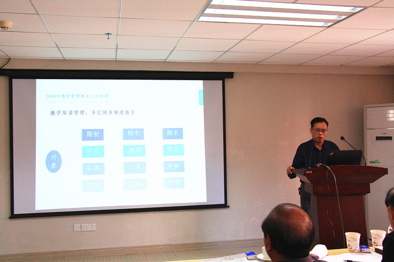 在各部门汇报完毕后,陈院长总体评价我校2016年度的工作情况为平稳有序,具体表现为在依法办学、规范办学以及招生就业、师资队伍建设、学生管理等方面都达到了预期目的。陈院长从学科专业建设、教学改革、师资队伍建设、学生管理工作及存在的问题五个方面对我们工作进行了总结。陈院长指出了学科专业建设中的亮点,我校工商管理专业列入一级学科重点建设,而会计学、市场营销、新闻传播学列入重点建设专业。在近期广东省教育厅的评审当中,我校会计学专业被纳入广东省特色重点学科,新闻传播学被纳入广东省重点培育专科。经济与金融系朱芳芳老师的课题也获广东省社科项目立项。而在教学改革中,我校探索了学分制的改造,并进行了实验。实践教学改革在此前的基础上也取得良好的效果。在教学质量体系监控的科学化、规范化方面也减少人为的干扰,做了比较好的指标监控。对于师资队伍建设方面,陈院长肯定了高层次人才引进、特岗教授聘任、紧缺专业负责人选配及教师教学工作量改革等工作的效果。在学生管理工作方面,需继续推进年级管理体系,探索学生工作队伍量化指标的建立等。陈院长也指出存在的不足,要求在新的一年中,以问题为导向,进一步做好各项工作,促进学院的全面发展。