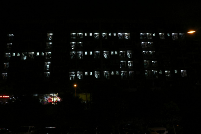 20:20,住在东十宿舍楼的学子们积极配合,认真协助熄灯活动。刹那间,东十宿舍楼南面变得漆黑一片。20:24,宿舍楼的一面亮起了灯,组成了HSC三个字母。20:26,由HSC的灯幕转变成了SAU。20:30,又由SAU变换为60+,熄灯一小时活动由此开始。